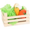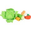 Zelenina je tak chutná! Tento set zeleniny se hodí do každé dětské kuchyňky, prodejního stánku a nebo jen tak. Dřevěná přepravka je naplněna okurkou, mrkví, rajčetem, hříbkem a salátem, které jsou plyšové. Listy salátu jsou připevněny suchým zipem, děti tak mohou salát „natrhat“. Hračka trénuje motoriku a inspiruje děti ke kreativitě. Naučte své děti o důležitosti zdravé a vyvážené stravy.