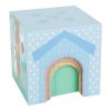 Skládaní je zábava! Pět kostek v trendy pastelových barvách, které mají také ilustraci zvířátek. Jen čekají, až je začnete skládat na sebe! Čtyři z kostek mají okýnko a dveře, ve kterých se mohou schovat postavičky zvířátek. Díky ilustraci na jedné ze stran děti poznají, jak by měly kostky správně složit. Skládání a třídění dětem pomůže rozvinout porozumění barvám a tvarům, také procvičí jejich motoriku. Kdo poskládá kostky ve správném pořadí? Všechny ilustrace jsou detailní a vhodné pro děti. Skládací věž je součástí produktové řady „Pastel“ a zaujme vysokým viditelným podílem dřeva a moderním zabarvením v pastelových barvách.