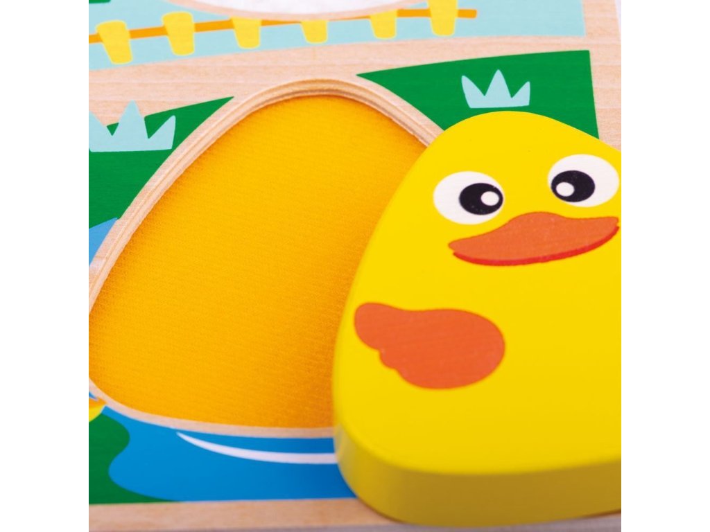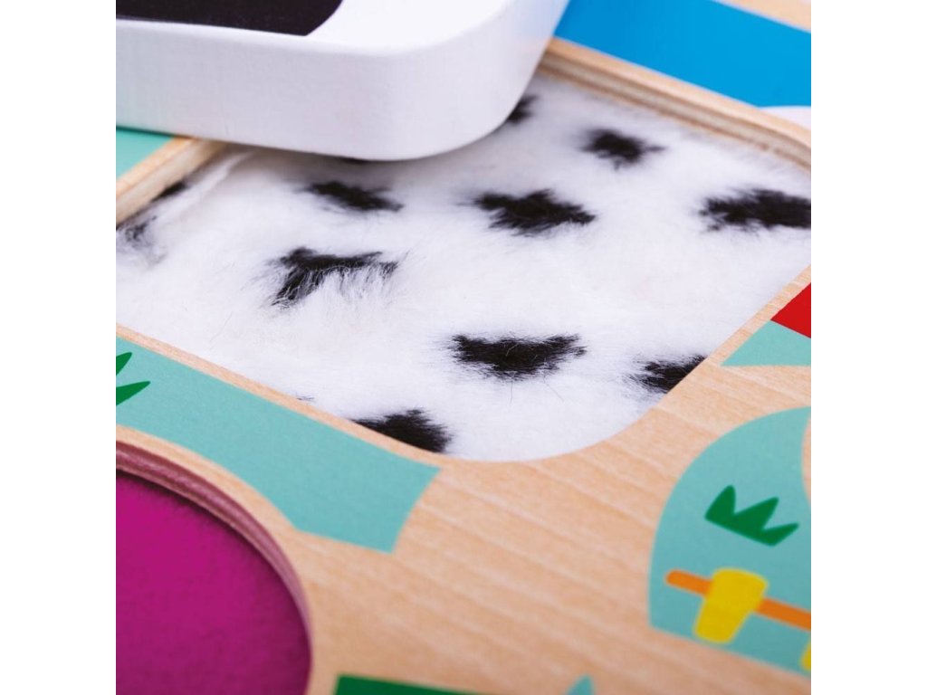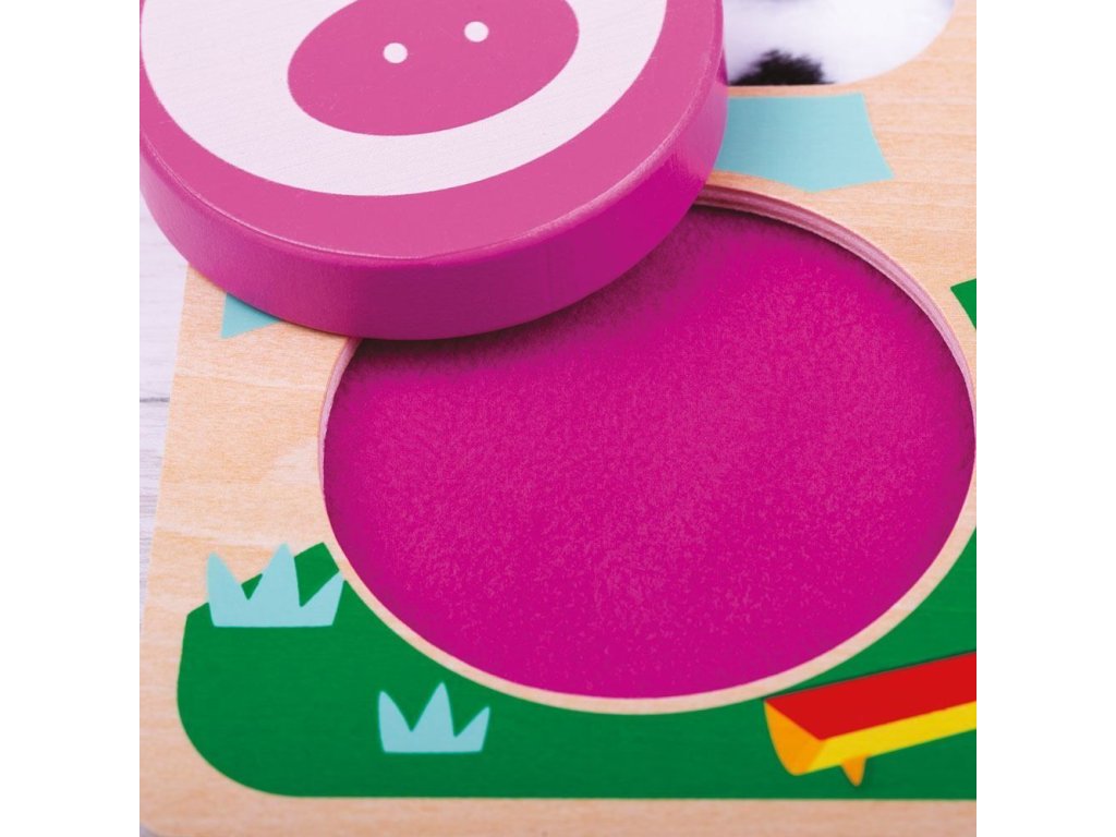 Pociťte vlněnou ovci nebo opeřenou kachnu... To jsou jen 2 ze struktur, které mohou děti s touto hračkou objevit. Zvířata, která jsou ilustrována v prostředí barevné farmy – prase, kachna, ovce a kráva. Senzorické puzzle je ideální hračkou pro brzký rozvoj dítěte. Vyjměte dílky puzzle a objevte 4 rozdílné struktury, které se pod nimi skrývají. Mladí umělci mohou dílky použít k obkreslování. Podporuje brzké poznávání tvarů. Rozvíjí koordinaci ruka-oko, jemnou motoriku a zručnost. Vyrobeno z kvalitních materiálů z odpovědných zdrojů. Odpovídá evropské bezpečnostní normě.